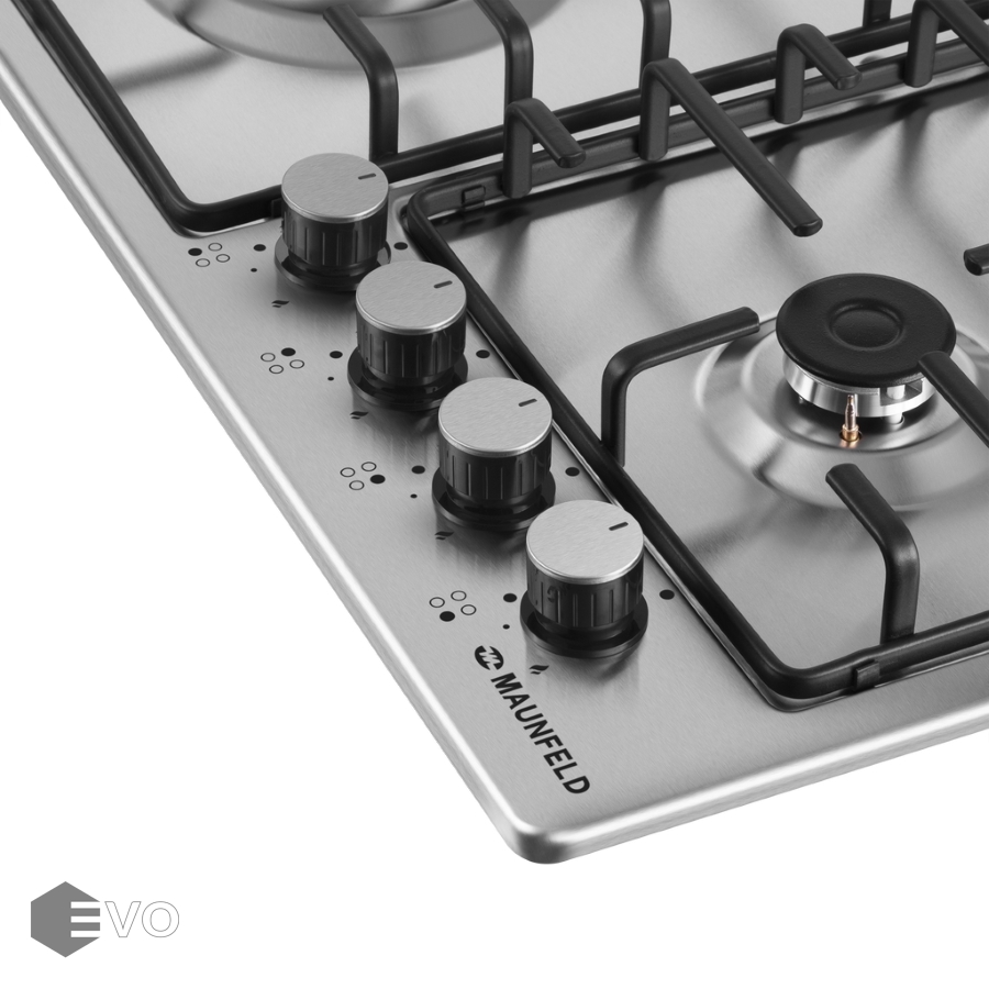 Газовая варочная поверхность MAUNFELD EGHS.64.3STS-ES/G – встраиваемая газовая варочная панель шириной 60 см может работать от магистрального газа и газа в баллоне (тип G30), для этого достаточно поставить специальные жиклеры, находящиеся в комплекте.