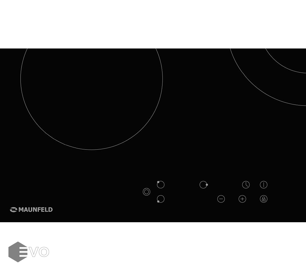 Функции: Таймер конфорок Блокировка панели управления Защитное отключение конфорок Индикатор остаточного тепла Контурная конфорка