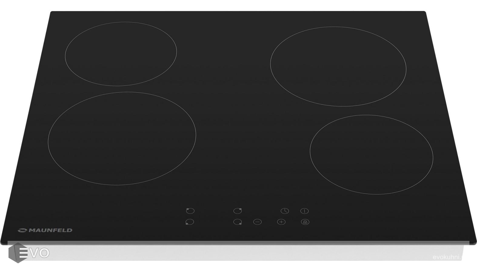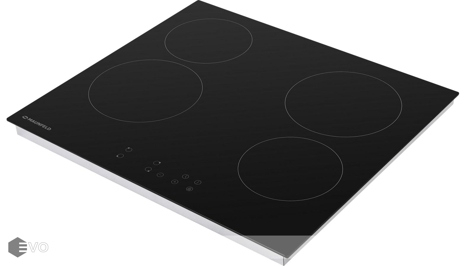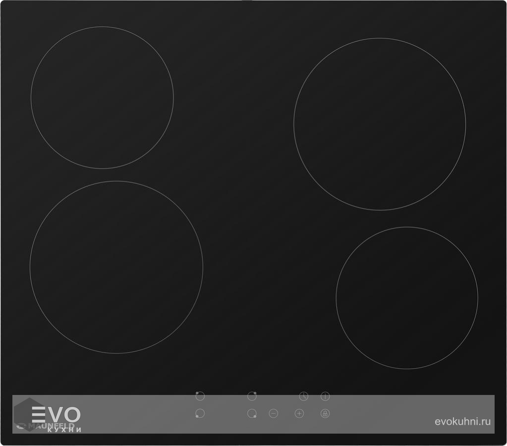 Электрическая варочная панель MAUNFELD EVCE.594-BK – встраиваемая 4-х конфорочная варочная панель шириной 60 см выполнена из термостойкой стеклокерамики черного цвета. Hi-Light конфорки, установленные в этой модели, очень быстро нагреваются (за 3-7 секунд). Две конфорки (165 мм) мощностью по 1200 Вт и 2 конфорки (200 мм) мощностью по 1800 Вт.