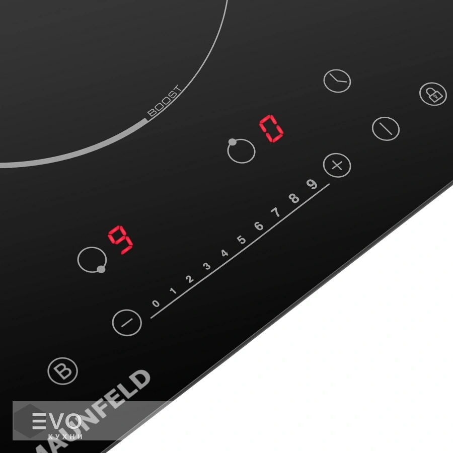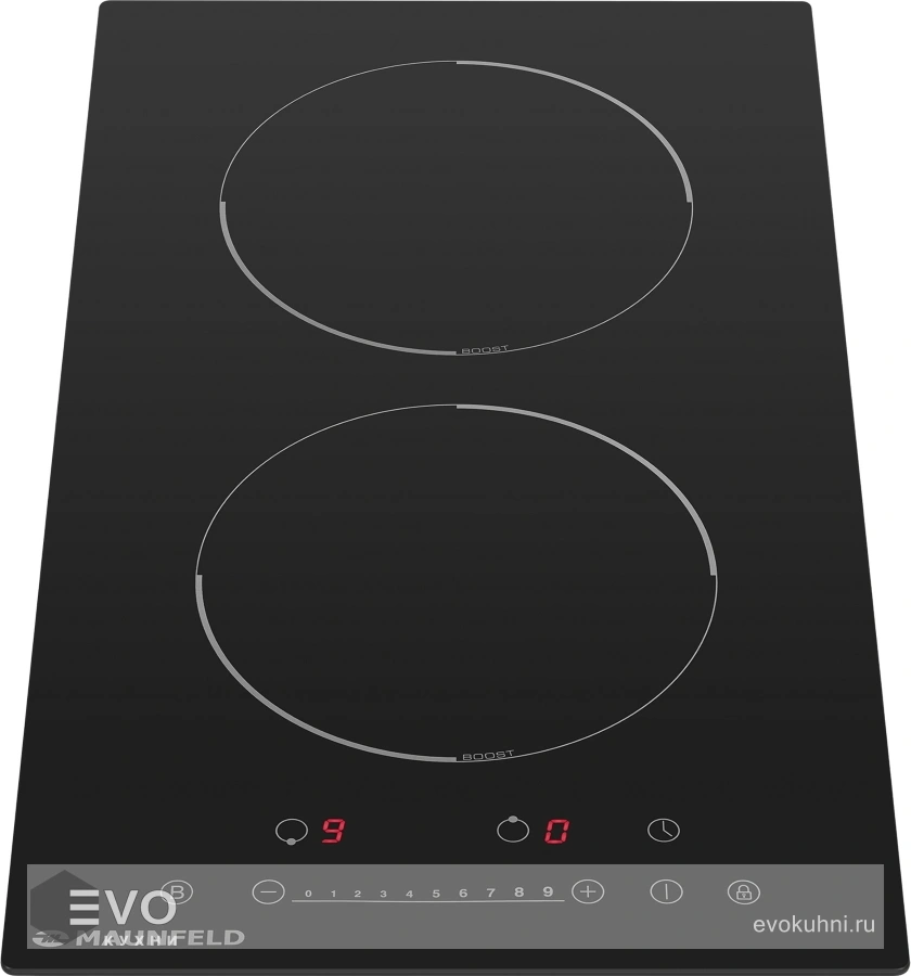 Индукционная варочная панель MAUNFELD EVI.292F-BK – варочная панель шириной 30 см, выполнена из жаропрочного износостойкого стекла Nippon Electric Glass. Диаметр каждой из 2-х конфорок составляет 180 мм. Одна конфорка мощностью 1500 Вт (бустер 1800 Вт), вторая - 2000 Вт (бустер 2300 Вт). Для приготовления на индукционной варочной панели пригодна посуда из ферромагнитного материала с ровными краями и плоским дном.