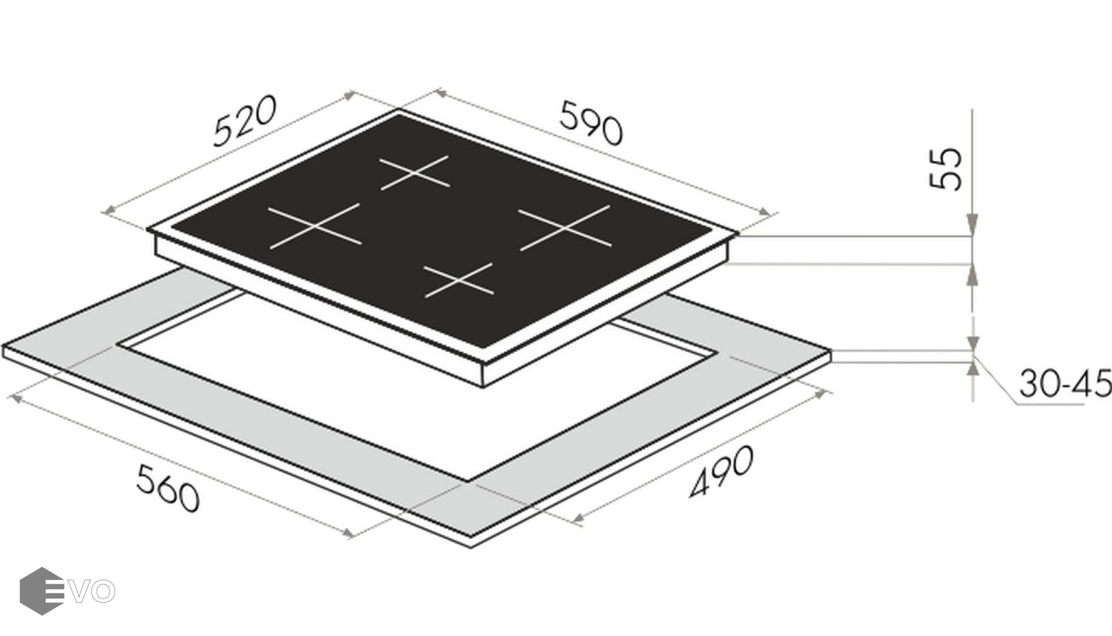 - Мощность конфорок, Вт: 2000/2600, 2000/2600, 1500/2000, 1500/2000