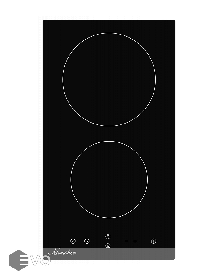 Monsher MHE 33 управляется через сенсорную панель на общем корпусе, она позволяет регулировать мощности в 9 различных вариациях. Для вашего удобства был внедрен индикатор остаточного тепла и таймер со звуком. А для безопасности предусмотрели защиту от детей и блокировку всей поверхности.