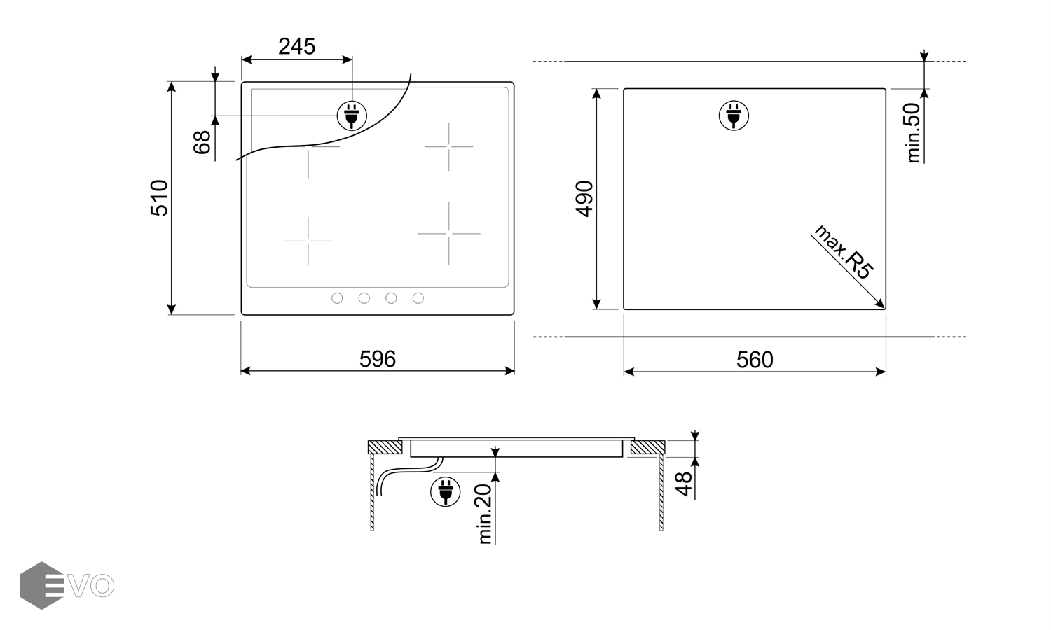 • Правая дальняя конфорка, диаметр/кВт: 148-214/1-2,2