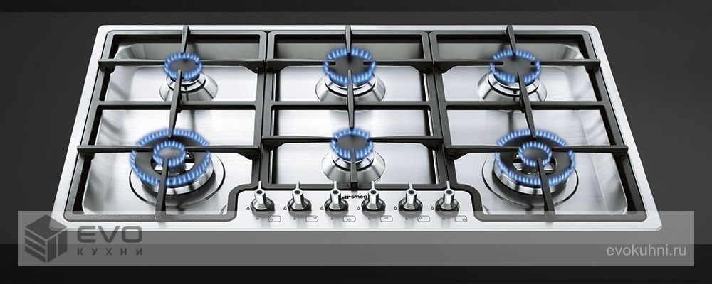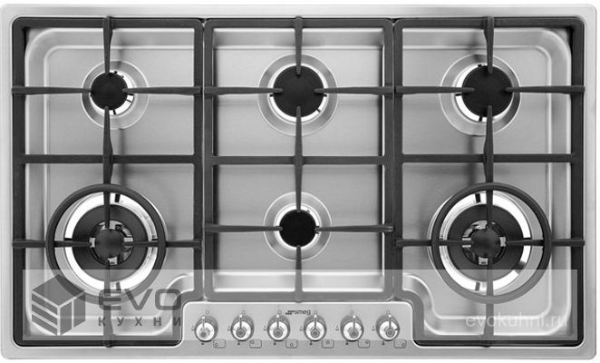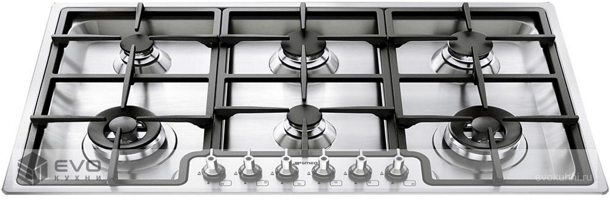 Газовая варочная панель SMEG PGF96 – газовая варочная поверхность из нержавеющей стали предназначена для домашнего применения (приготовление и нагрев блюд). Установка возможна на различные жаростойкие материалы. Имеет шесть конфорок с функцией автоматического электроподжига: 2 средние, 2 малые, 2 WOK. Управление осуществляется при помощи поворотных регуляторов.
