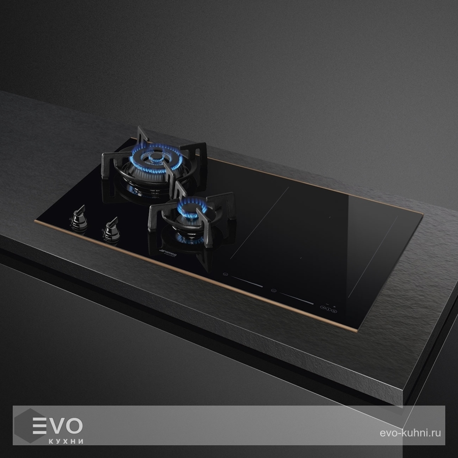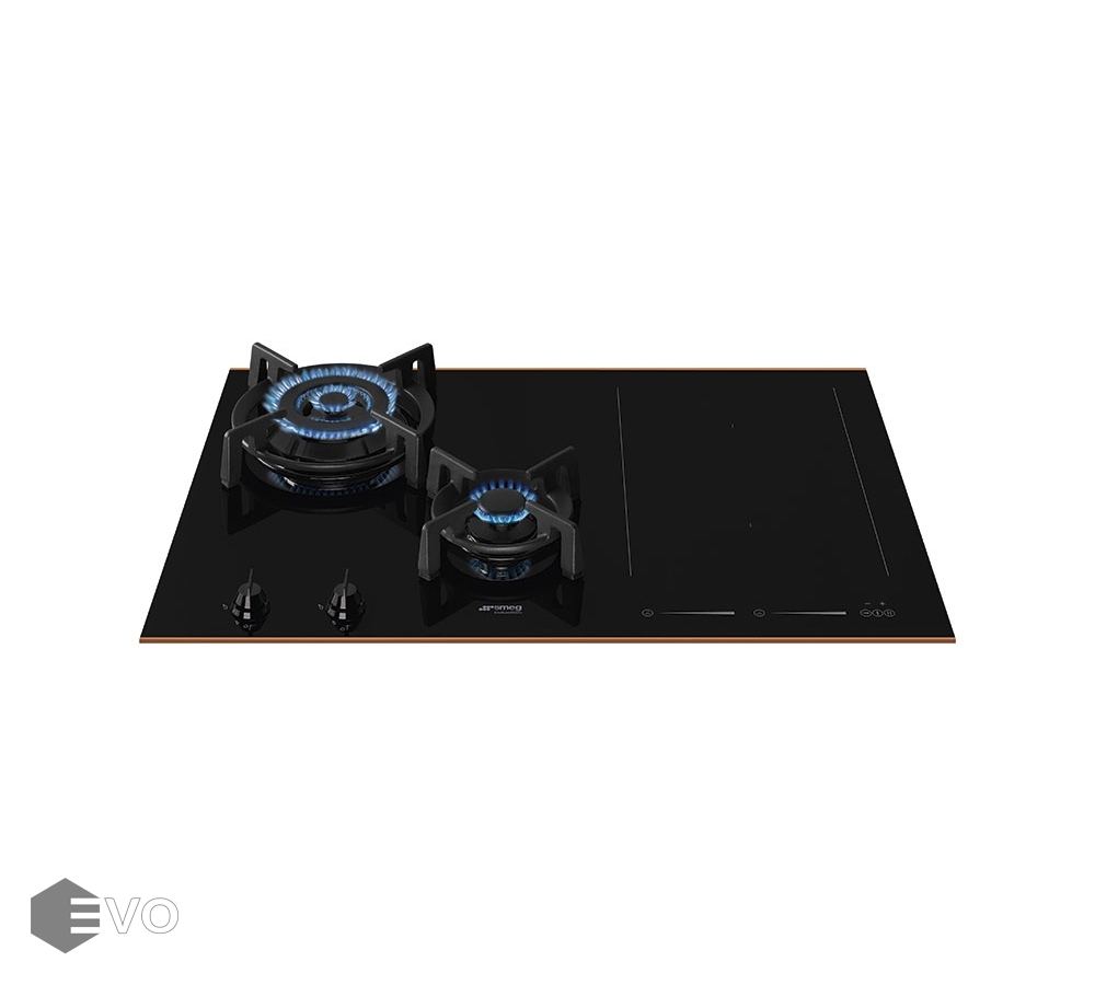 Комбинированная варочная панель SMEG PM6721WLDR – варочная поверхность «газ + индукция» из стеклокерамики с медной рамкой и предназначена для домашнего применения (приготовление и нагрев блюд). Установка возможна на различные жаростойкие материалы. Индукционная варочная панель используется посредством сенсорного слайдера.