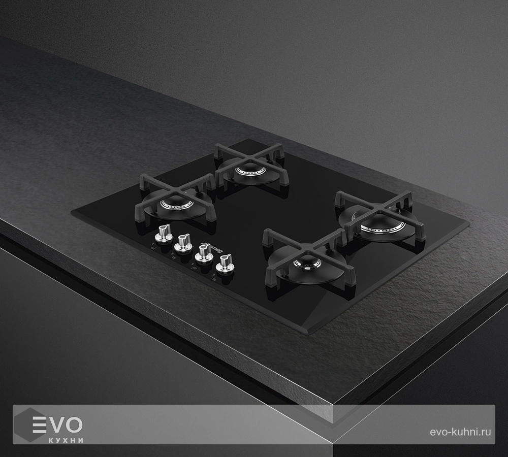 - Цвет поворотных переключателей конфорок: нержавеющая сталь
