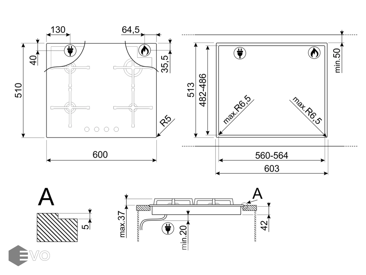Газовая варочная панель SMEG PV164N2 – газовая варочная поверхность из закаленного стекла предназначена для домашнего применения (приготовление и нагрев блюд). Установка возможна на различные жаростойкие материалы. Имеет четыре конфорки с функцией автоматического электроподжига: 1 маленькая, 2 среднии, 1 большая. Управление осуществляется при помощи поворотных регуляторов.