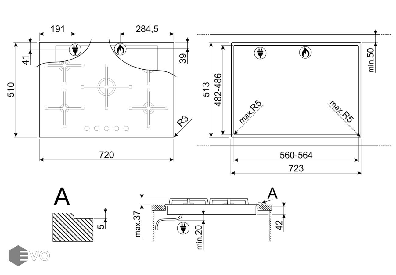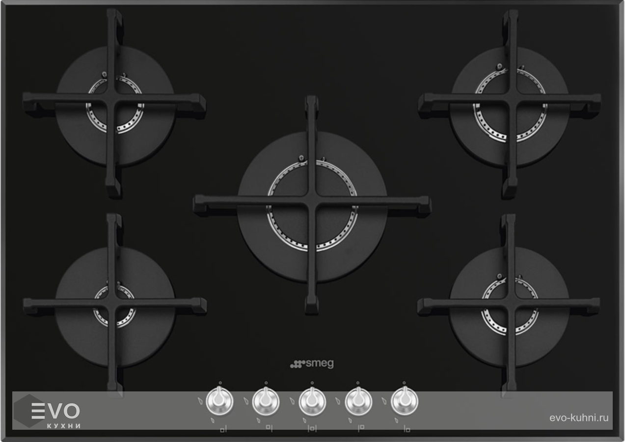 Газовая варочная панель SMEG PV175N2 – газовая варочная поверхность из закаленного стекла предназначена для домашнего применения (приготовление и нагрев блюд). Установка возможна на различные жаростойкие материалы. Имеет четыре конфорки с функцией автоматического электроподжига: 1 маленькая, 2 средние, 2 большие. Управление осуществляется при помощи поворотных регуляторов.