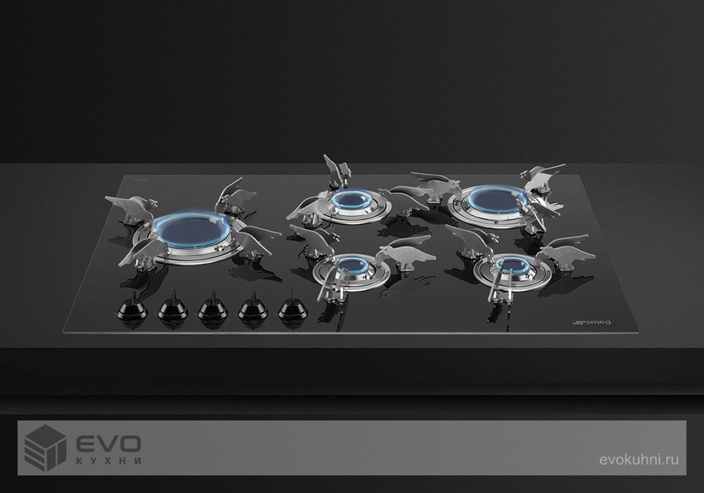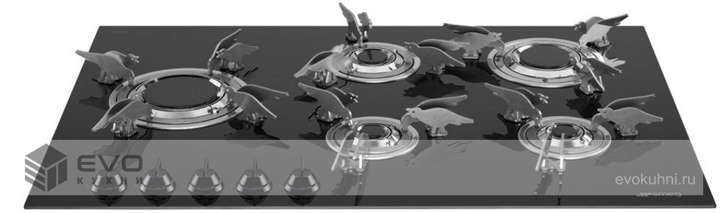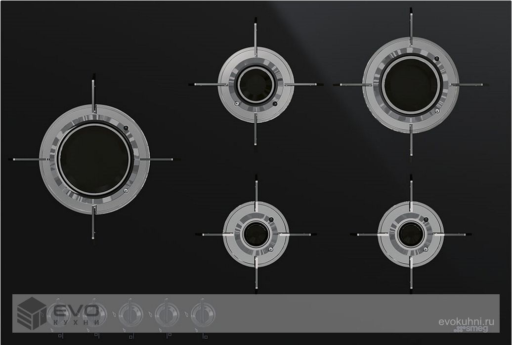 Газовая варочная панель SMEG PVL675LCN – газовая варочная поверхность из закаленного стекла и предназначена для домашнего применения (приготовление и нагрев блюд). Установка возможна на различные жаростойкие материалы. Имеет пять конфорок с функцией автоматического электроподжига: 2 малые, 2 большие, 1 средняя. Управление осуществляется при помощи поворотных регуляторов.