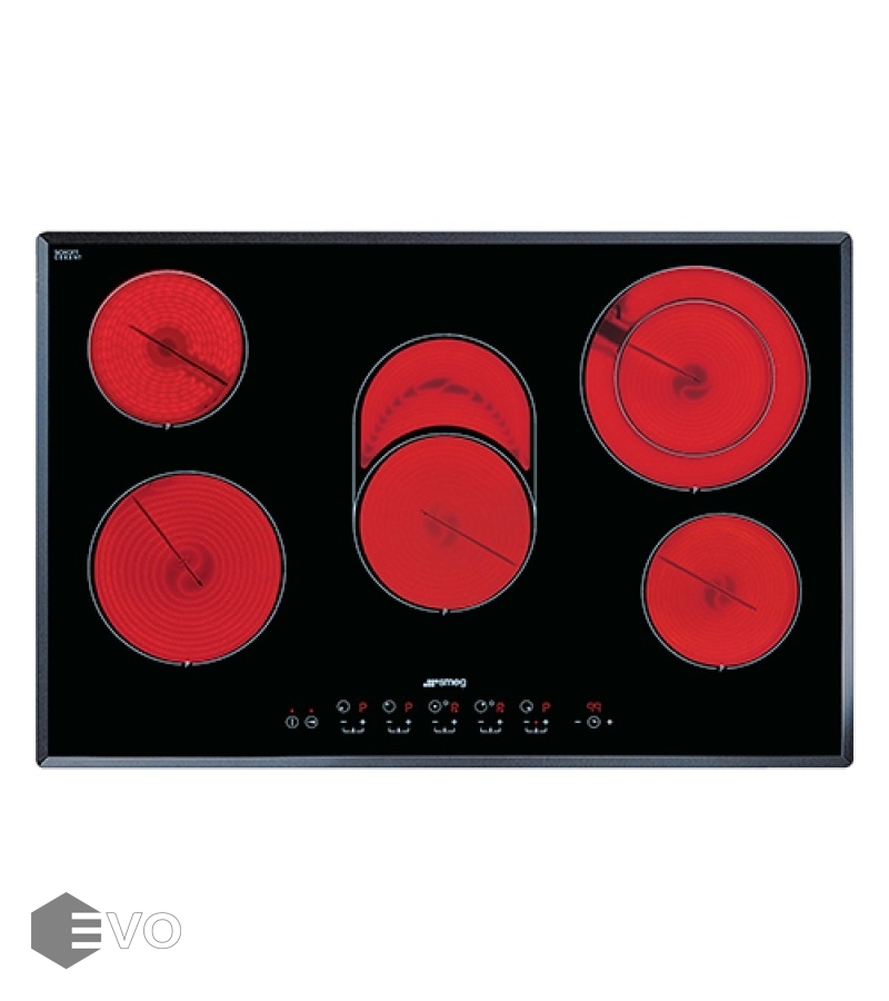 Электрическая варочная панель SMEG SE385EMTB — панель выполнена из черной стеклокерамики, оснащена 5 варочными зонами различного диаметра и мощности. Выбор интенсивности нагрева производится по 9 ступеням. Индикация остаточного тепла информирует, что температура конфорки выше 60°C и ее можно использовать для подогрева готовых блюд, или для растапливания масла, шоколада.