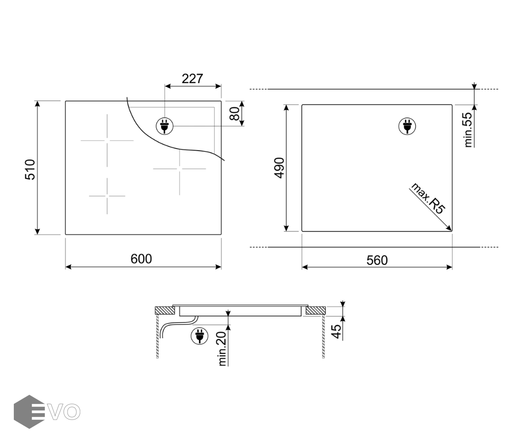 - Материал поверхности: стеклокерамика