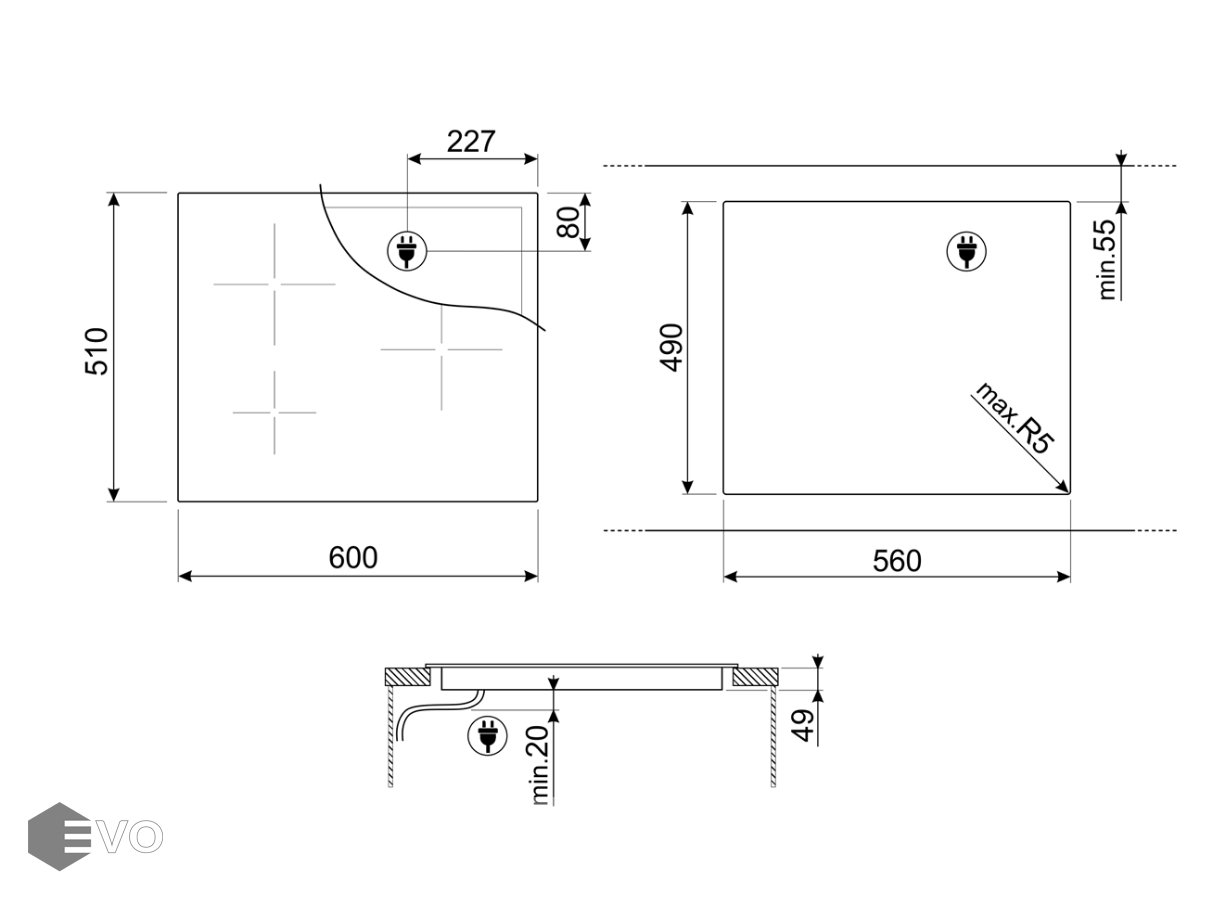 - Материал поверхности: стеклокерамика