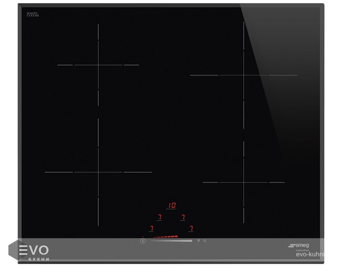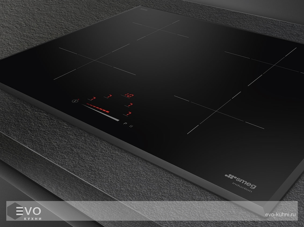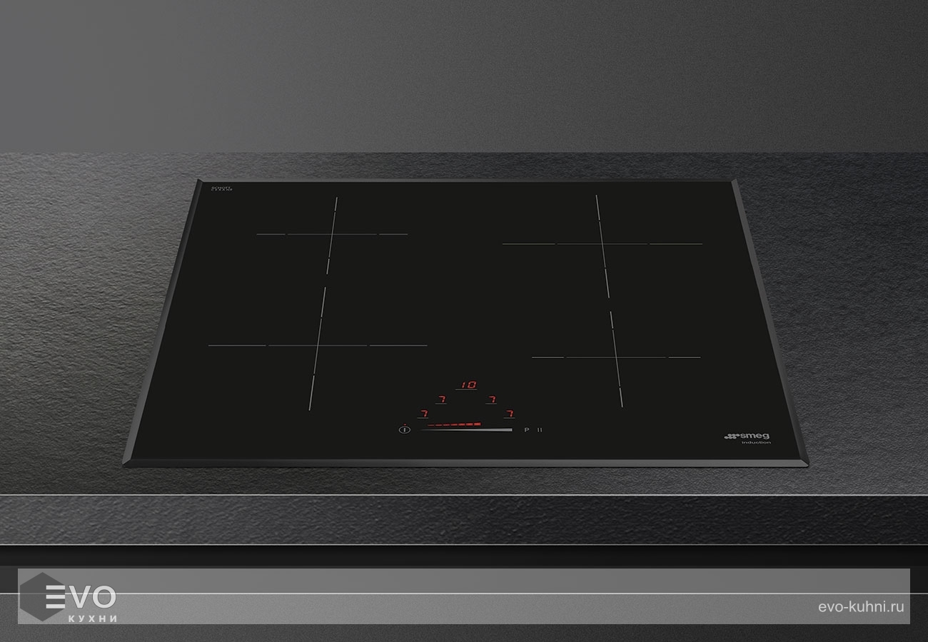 Индукционная варочная панель SMEG SI4642B — на панели расположены 4 зоны нагрева с возможностью объединения, когда нужно готовить в посуде нестандартной формы. На сенсорном дисплее одним движением пальца можно выбрать режим мощности из 9 предложенных.