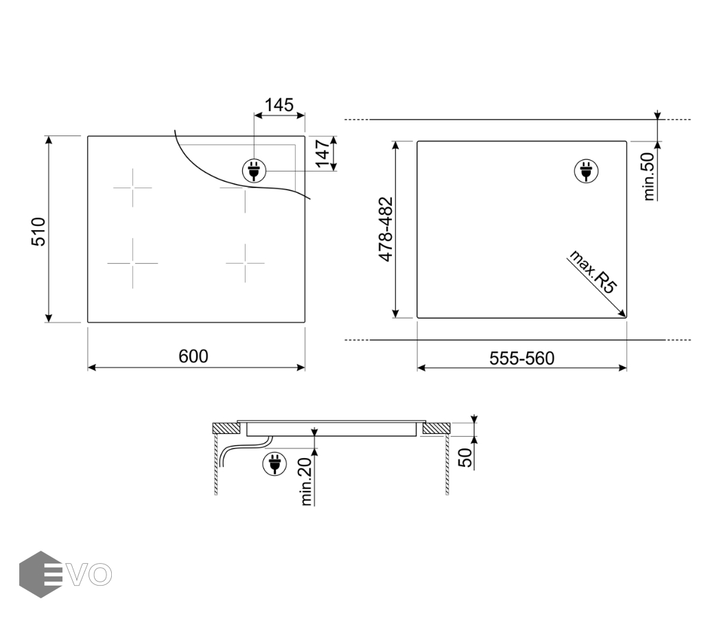 - Задняя правая конфорка, диаметр мм/кВт: 210/2,3. BOOSTER, кВт: 3