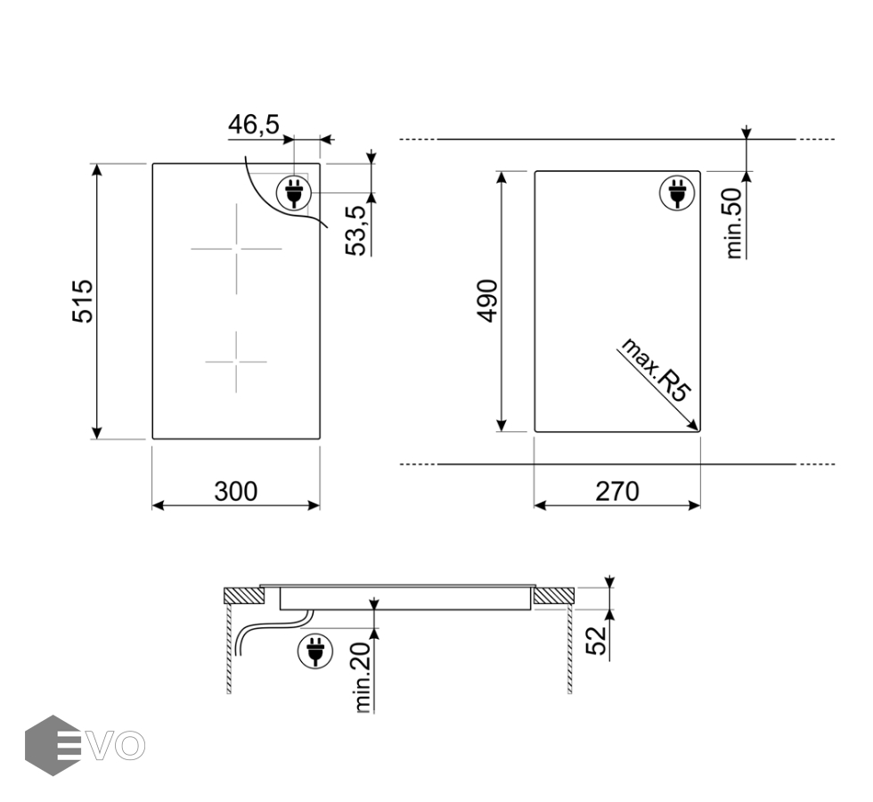 - Дальняя конфорка, диаметр мм/кВт: 210/2,3. Booster на 3 кВт