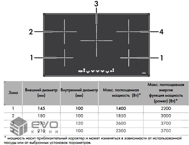 Каждая зона оснащена индикатором остаточного тепла, таймером, возможностью поставить на паузу. При перегреве или протекании жидкости (закипание) зона автоматически отключается. Можно заблокировать панель от случайного вмешательства. В каждую зону заложена опция кратковременного увеличения мощности для быстрого закипания большого объема жидкости.