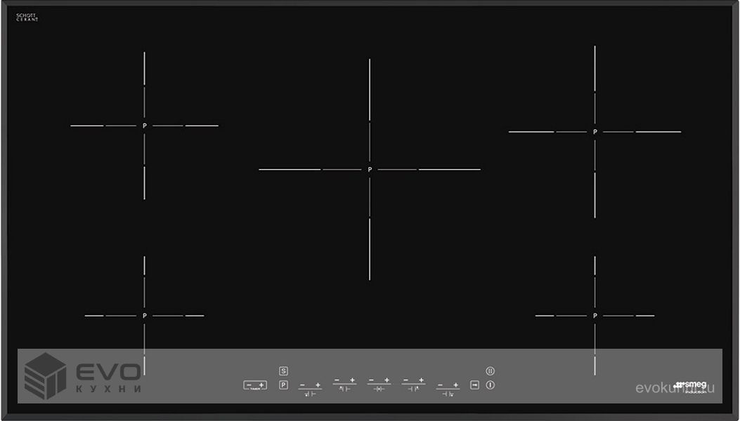 Индукционная варочная панель SMEG SI5952B — на панели расположены 5 зоны нагрева с возможностью объединения, когда нужно готовить в посуде нестандартной формы. На сенсорном дисплее одним движением пальца можно выбрать режим мощности из 14 предложенных.
