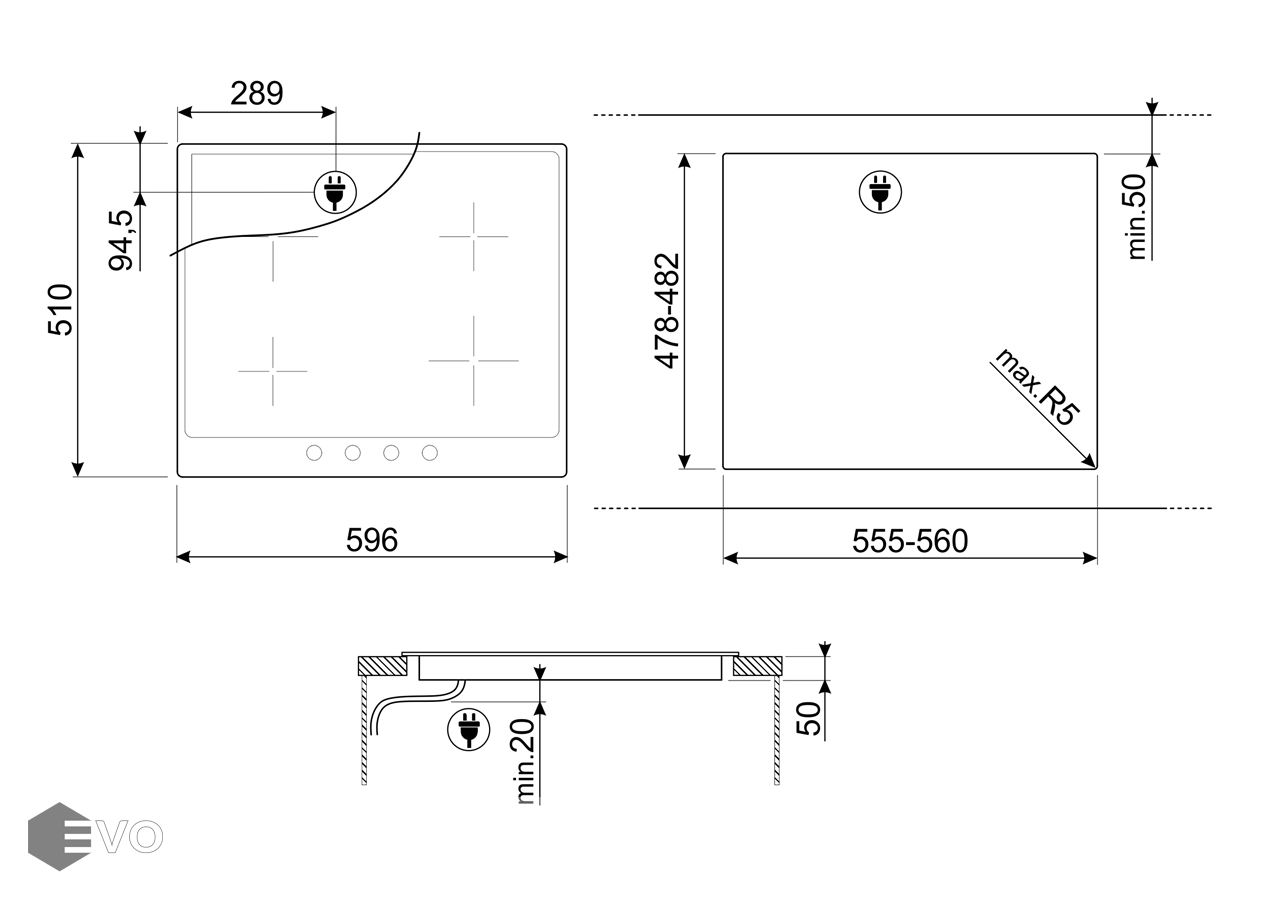 - Ширина, мм: 596
