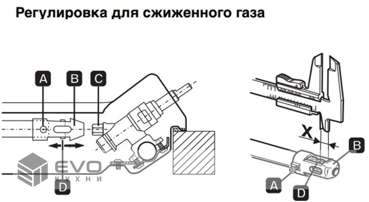 Как и большинство современных полноразмерных газовых плит данная модель оснащена технологией автоматического электроподжига, а также функцией «Газ-контроль», это значит, что при затухании пламени, подача газа прекращается автоматически, т. е. устройство надежно и безопасно. Работает, также и от магистрального газа и газа в баллоне (тип G30), для этого достаточно поставить специальные жиклеры, которые есть в комплекте.