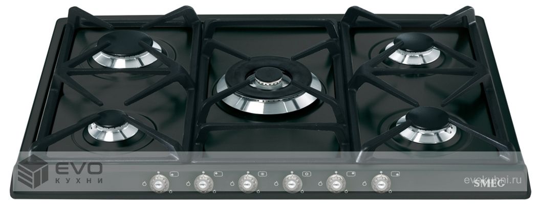 Газовая варочная панель SMEG SR775AS – газовая варочная поверхность из эмалированной стали предназначена для домашнего применения (приготовление и нагрев блюд). Установка возможна на различные жаростойкие материалы. Имеет пять конфорок с функцией автоматического электроподжига: 1 маленькая, 2 средние, 1 большая, 1 WOK. Управление осуществляется при помощи поворотных регуляторов.