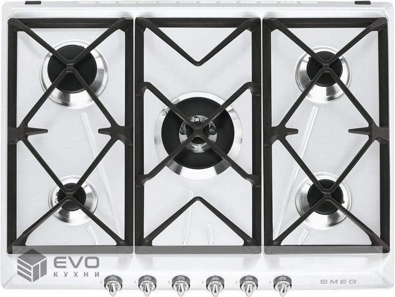 Газовая варочная панель SMEG SR975BGH – газовая варочная поверхность из эмалированной стали предназначена для домашнего применения (приготовление и нагрев блюд). Установка возможна на различные жаростойкие материалы. Имеет пять конфорок с функцией автоматического электроподжига: 1 маленькая, 2 средние, 1 большая, 1 WOK. Управление осуществляется при помощи поворотных регуляторов.
