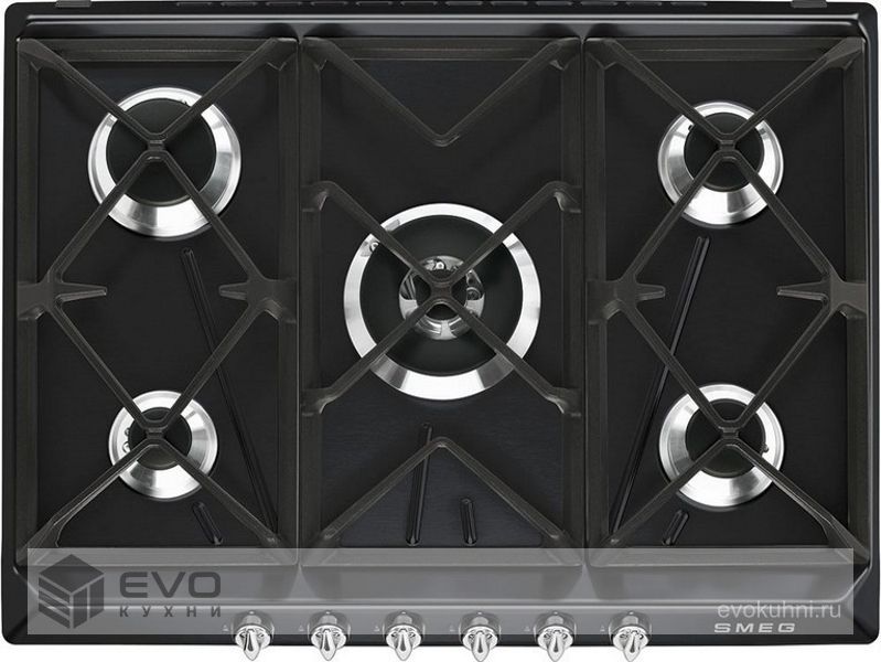 Газовая варочная панель SMEG SR975NGH – газовая варочная поверхность из эмалированной стали предназначена для домашнего применения (приготовление и нагрев блюд). Установка возможна на различные жаростойкие материалы. Имеет пять конфорок с функцией автоматического электроподжига: 1 маленькая, 2 средние, 1 большая, 1 WOK. Управление осуществляется при помощи поворотных регуляторов.