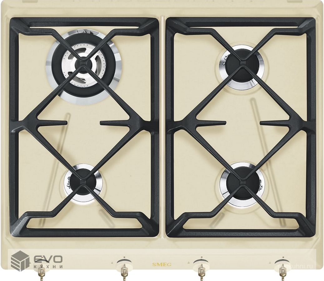 Газовая варочная панель SMEG SRV864POGH – газовая варочная поверхность из эмалированной стали и предназначена для домашнего применения (приготовление и нагрев блюд). Установка возможна на различные жаростойкие материалы. Имеет четыре конфорки с функцией автоматического электроподжига: 1 маленькая, 2 средние, 1 WOK. Управление осуществляется при помощи поворотных регуляторов.