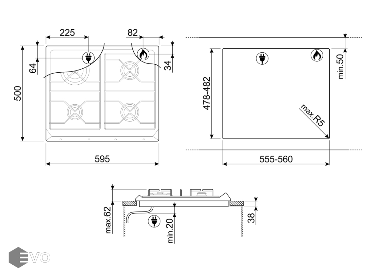 - Ширина, мм: 595