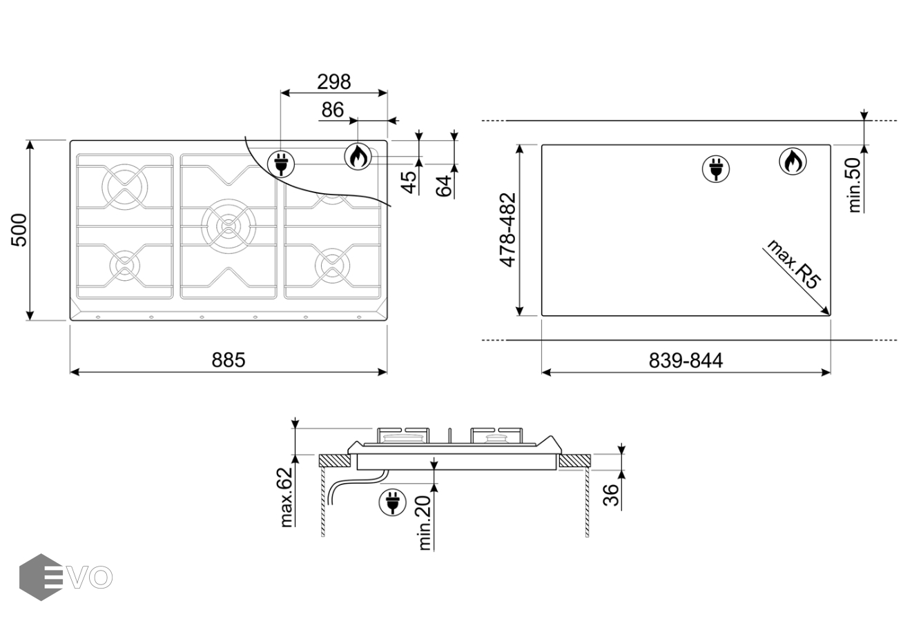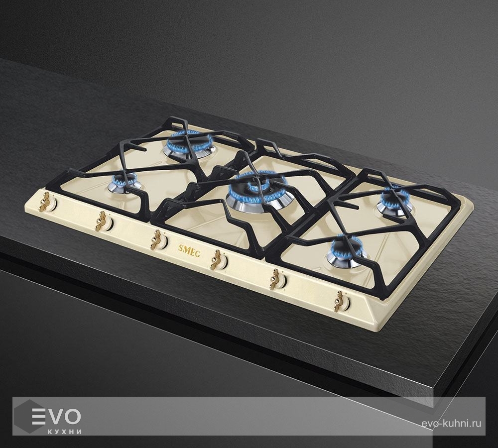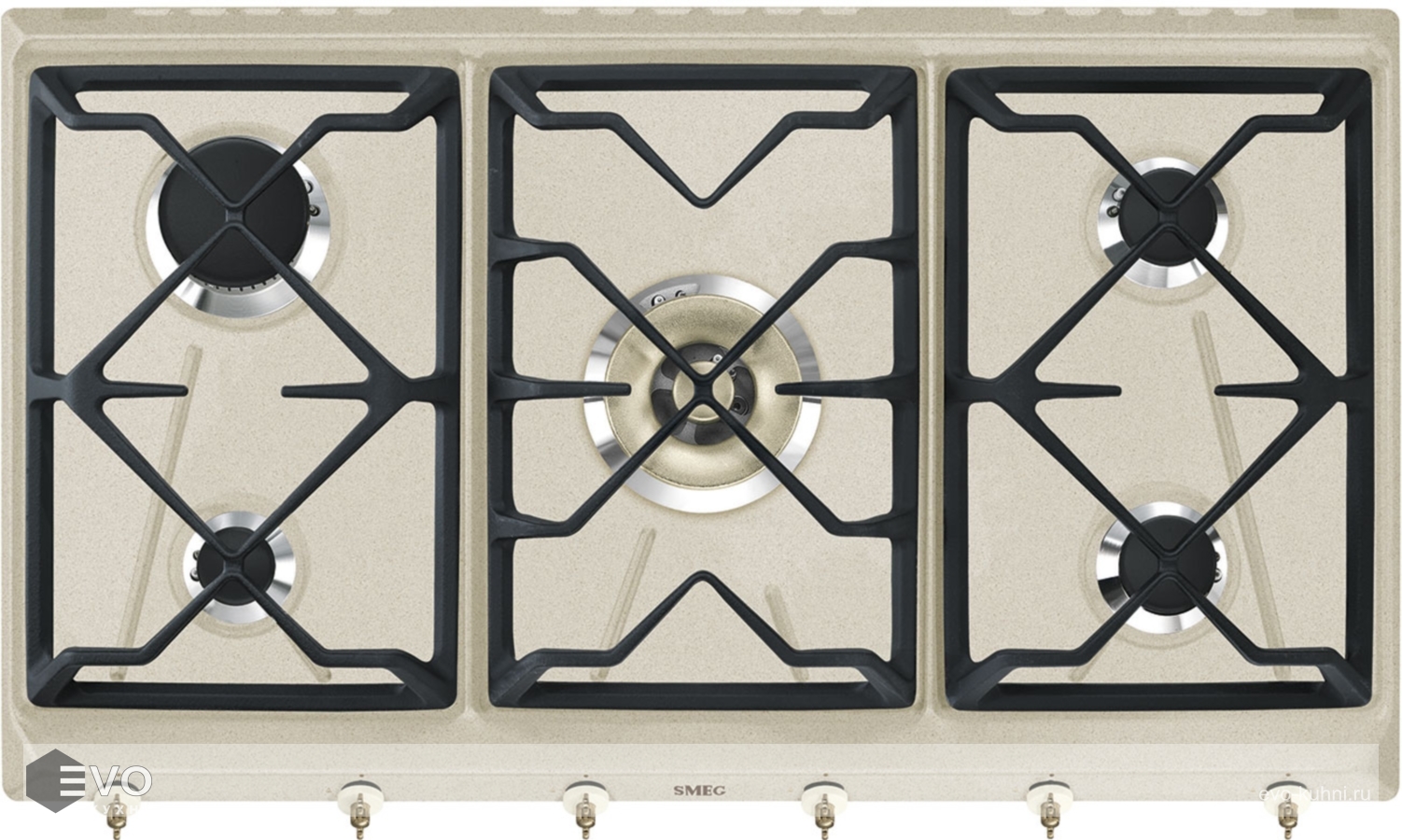 Газовая варочная панель SMEG SRV896AVOGH2 – газовая варочная поверхность из эмалированной стали предназначена для домашнего применения (приготовление и нагрев блюд). Установка возможна на различные жаростойкие материалы. Имеет пять конфорок с функцией автоматического электроподжига: 1 маленькая, 2 средние, 1 большая, 1 WOK. Управление осуществляется при помощи поворотных регуляторов.