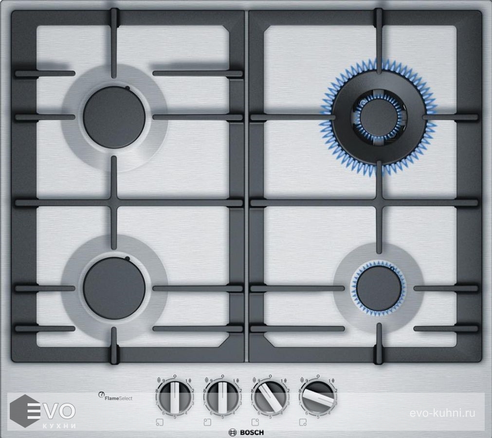 Газовая варочная панель PCH6A5B90 с независимым способом установки имеет 9 ступенчатую систему регулировки пламени FlameSelect.