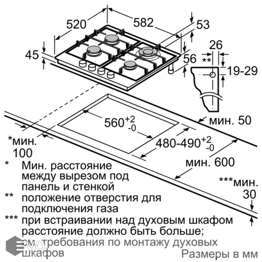 Размеры встраивания (ВхШхГ), мм: 53х560х480