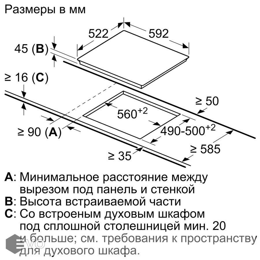 Размеры встраивания (ВхШхГ), мм: | 50х560х490 |