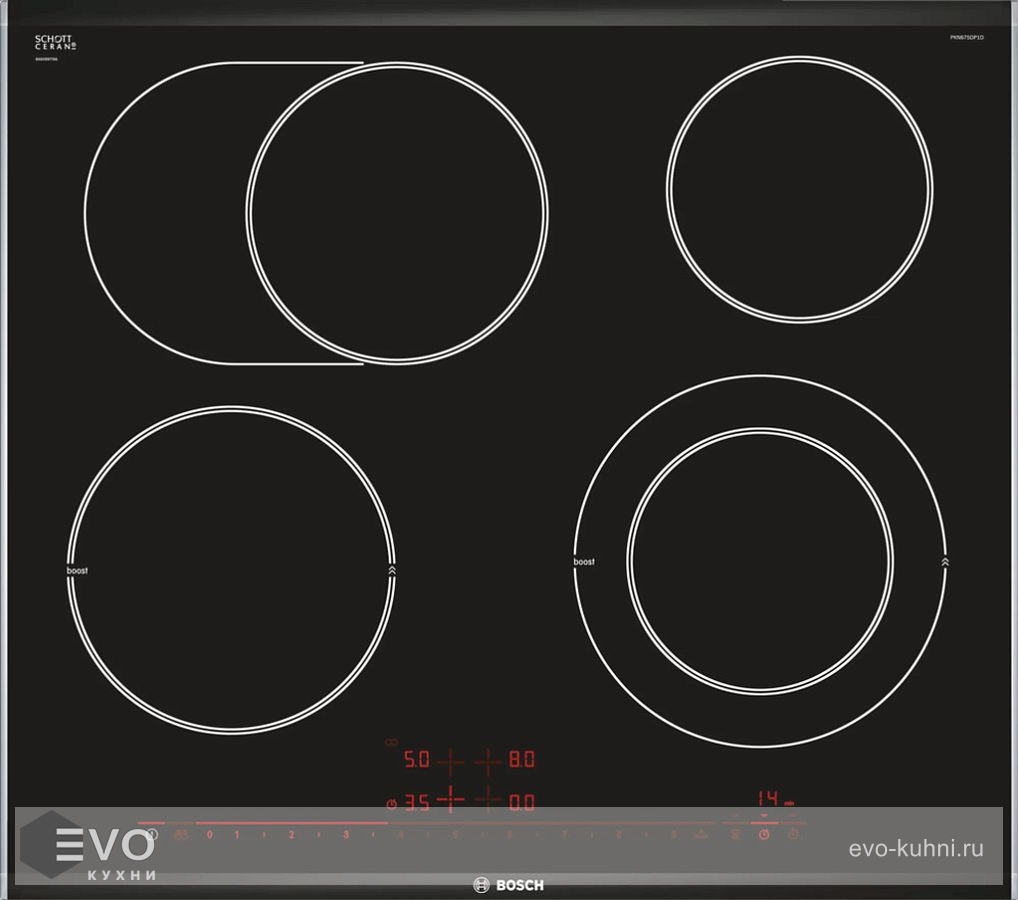Варочная панель Bosch PKN675DP1D имеет 2 зоны расширения для разных типов посуды. Функция блокировка от детей убережет от случайного нажатия. Устройство оснащено 17 ступеней мощности для точного регулирования температуры.