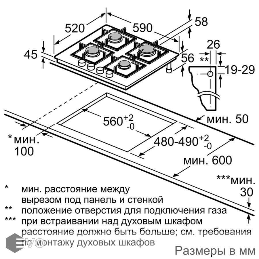 Размеры встраивания (ВхШхГ), мм: | 58х560х490 |