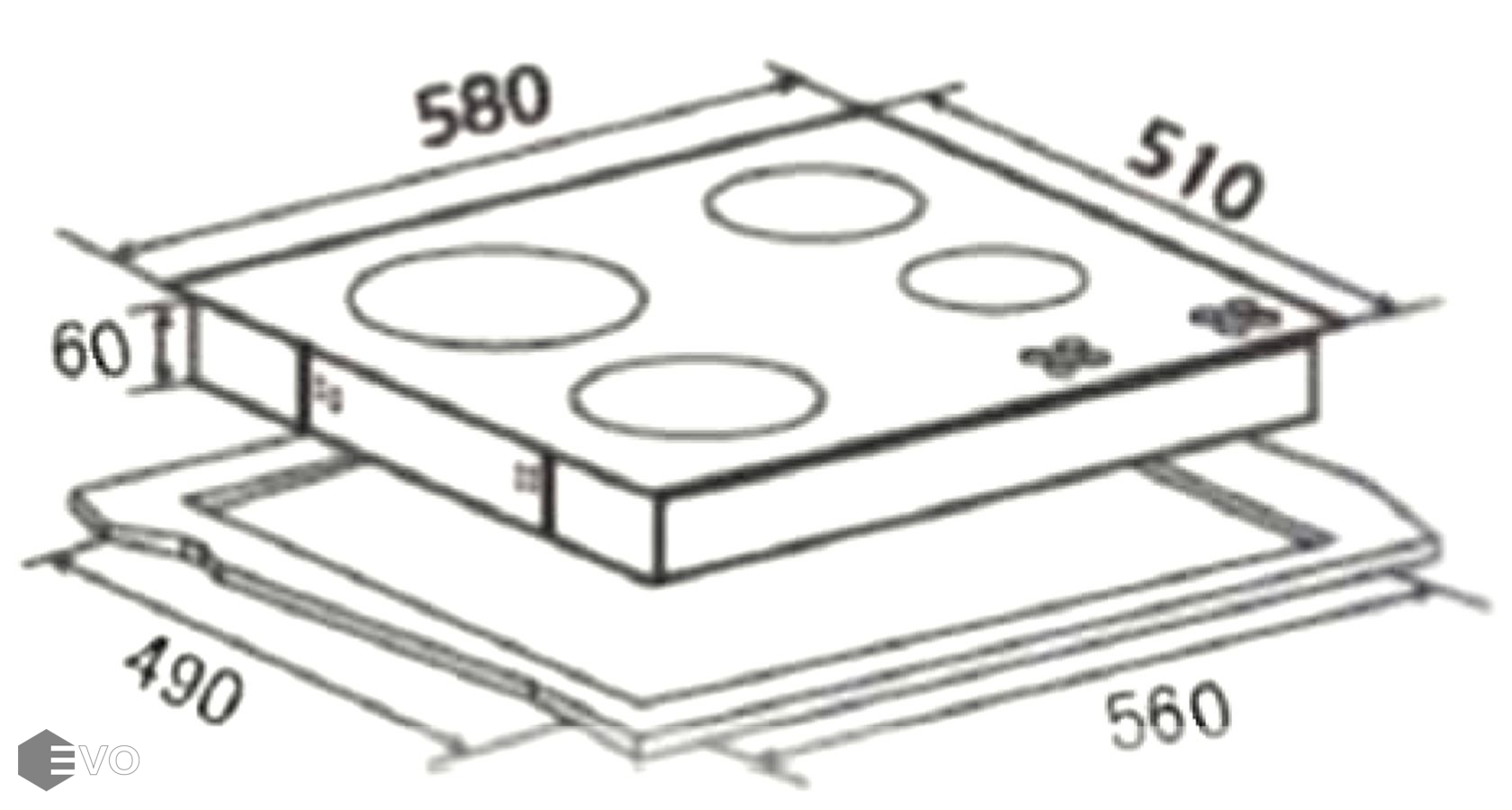 Размеры встраивания (ВхШхГ), мм: | 60х580х510 мм |