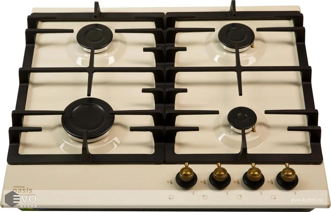 - Правая ближняя конфорка: газовая, мощность 900 Вт, одноконтурная