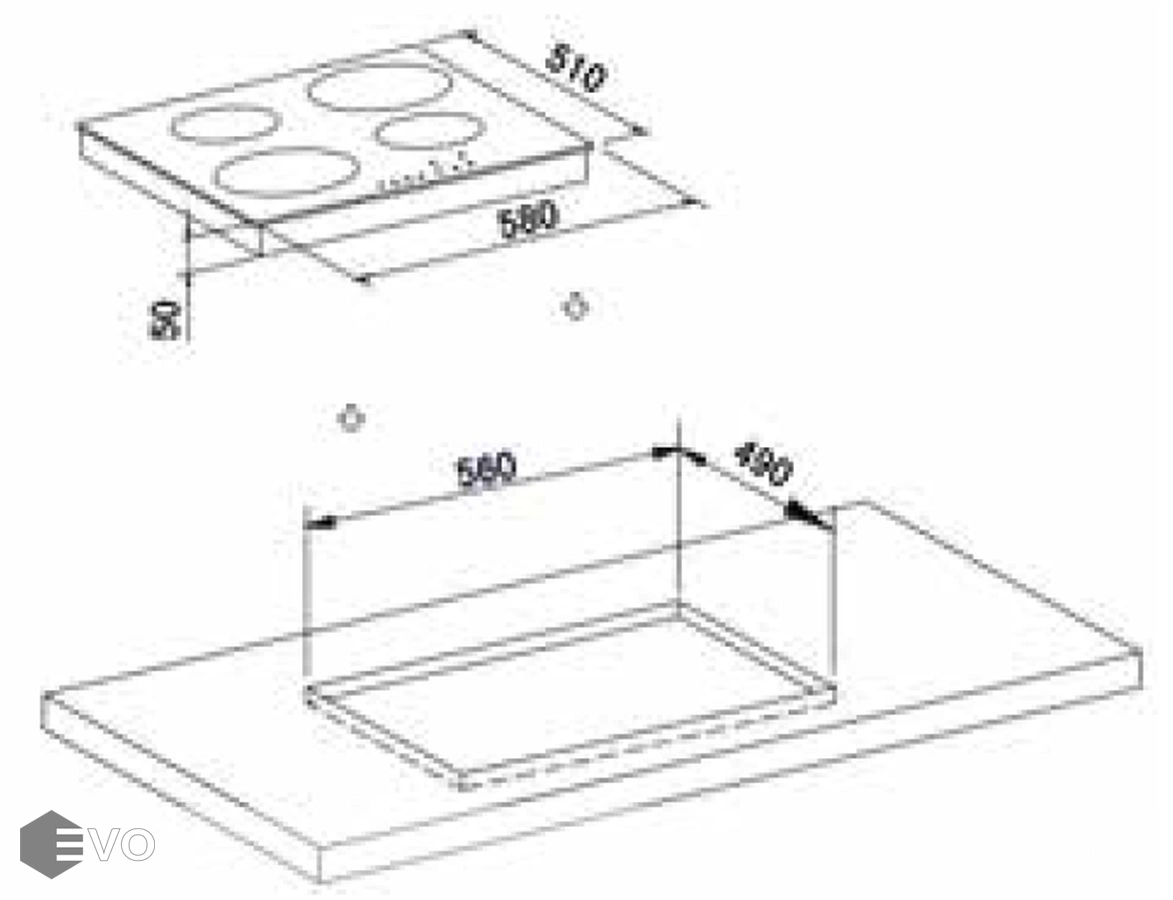| Размеры встраивания (ВхШхГ), мм: | 50х580х510 мм |