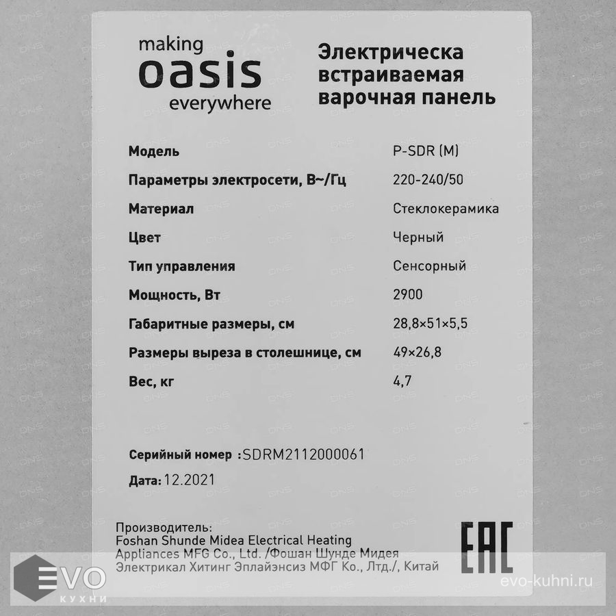 Варочная панель Oasis P-SDR