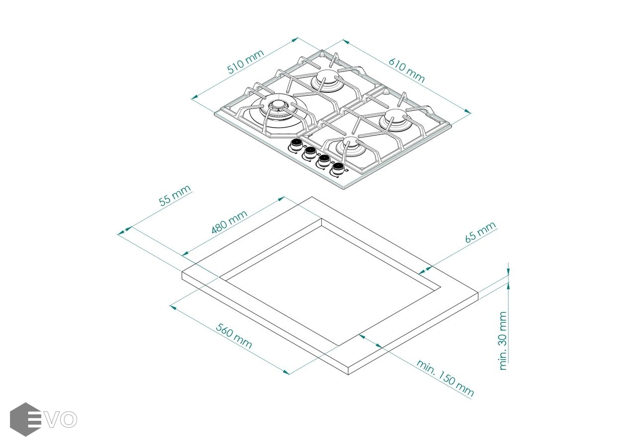 | Размеры встраивания (ВхШхГ), мм: | 65х560х480 |