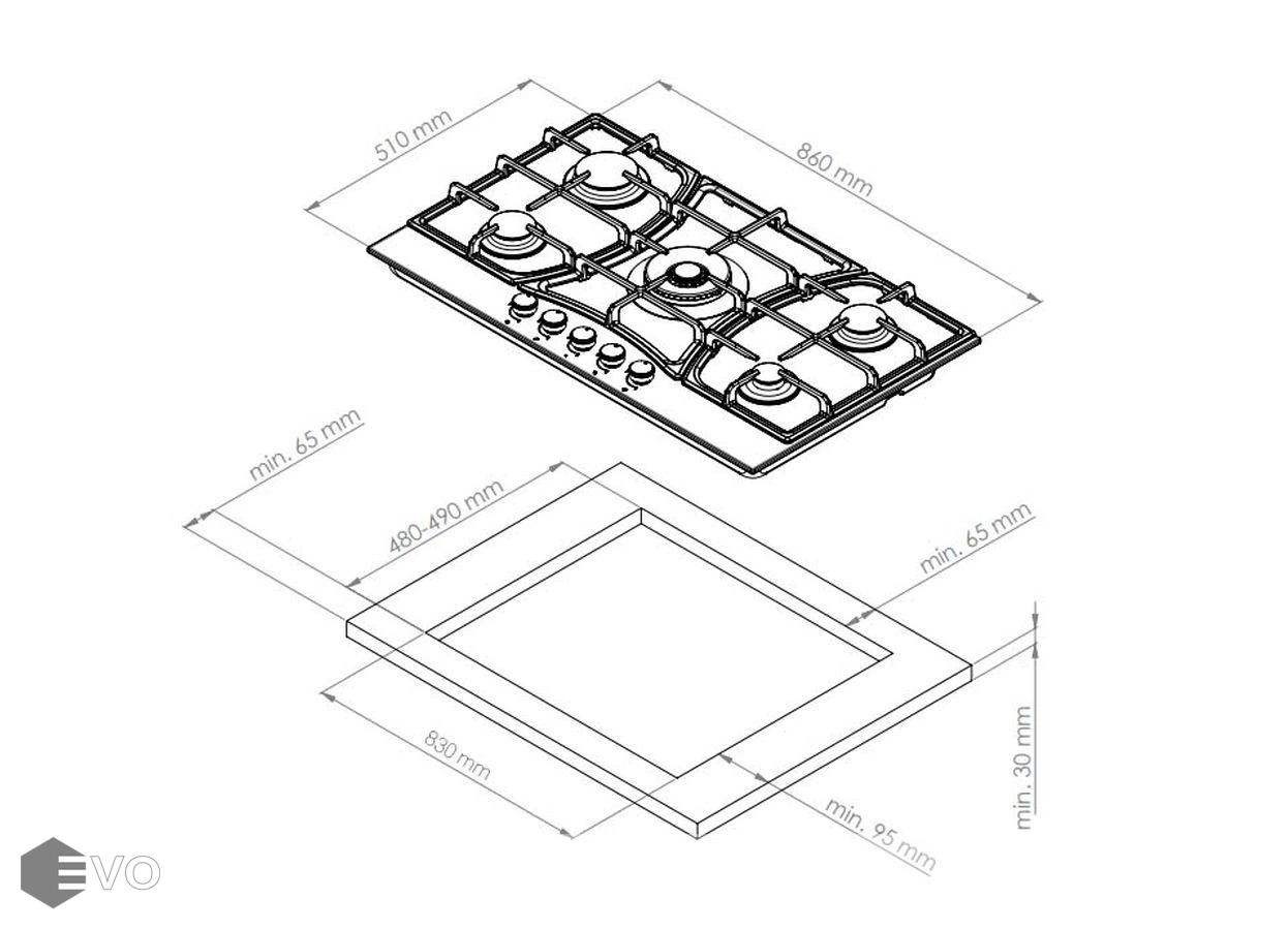 | Размеры встраивания (ВхШхГ), мм: | 65х830х490 |