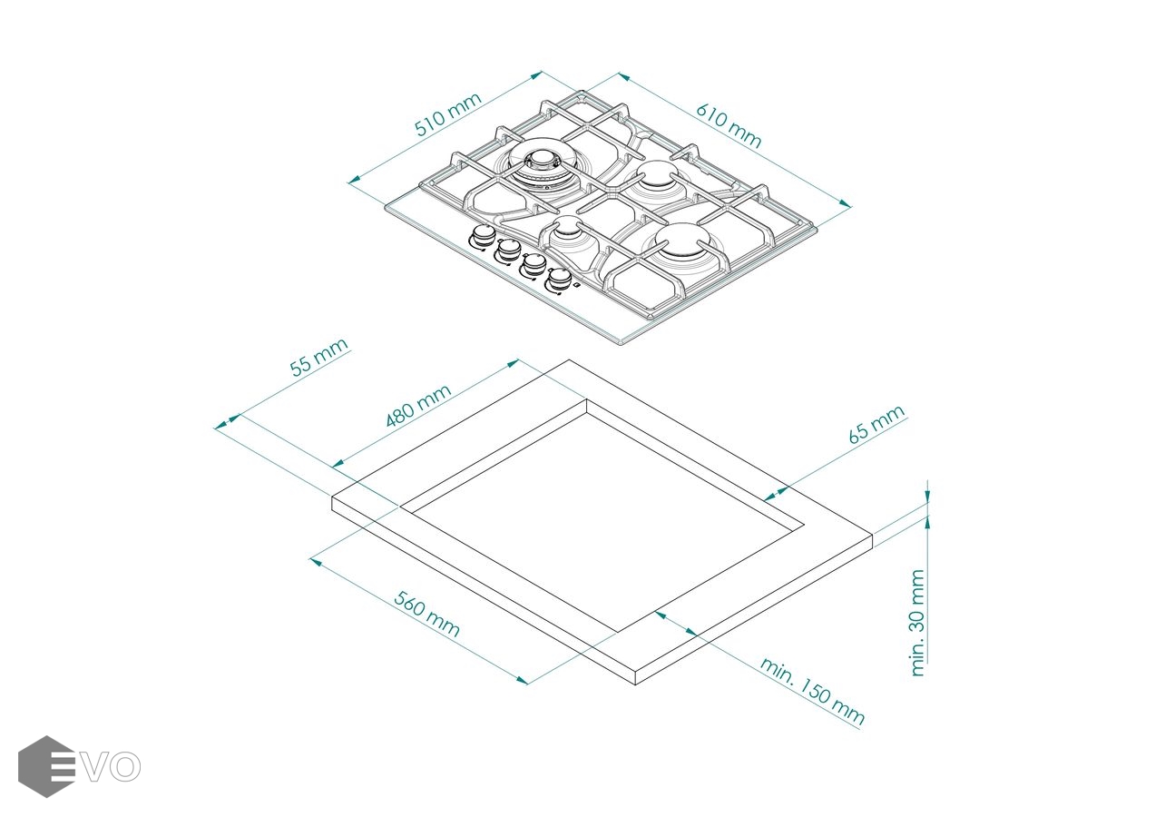 Размеры встраивания (ВхШхГ), мм: | 65х560х480 |