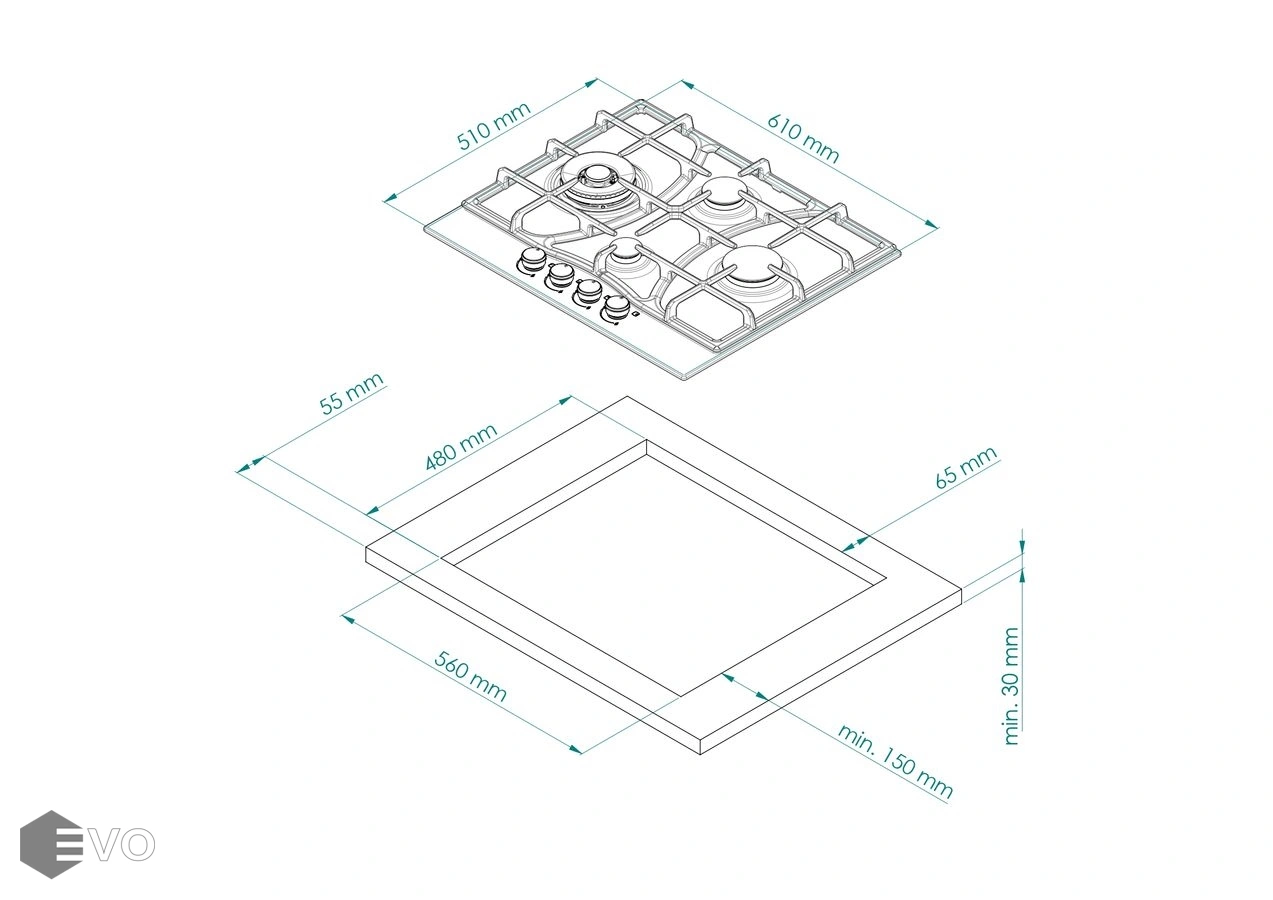 | Размеры встраивания (ВхШхГ), мм: | 65х560х480 |