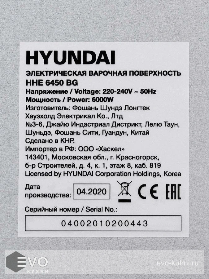Варочная панель Hyundai HHE 6450 BG