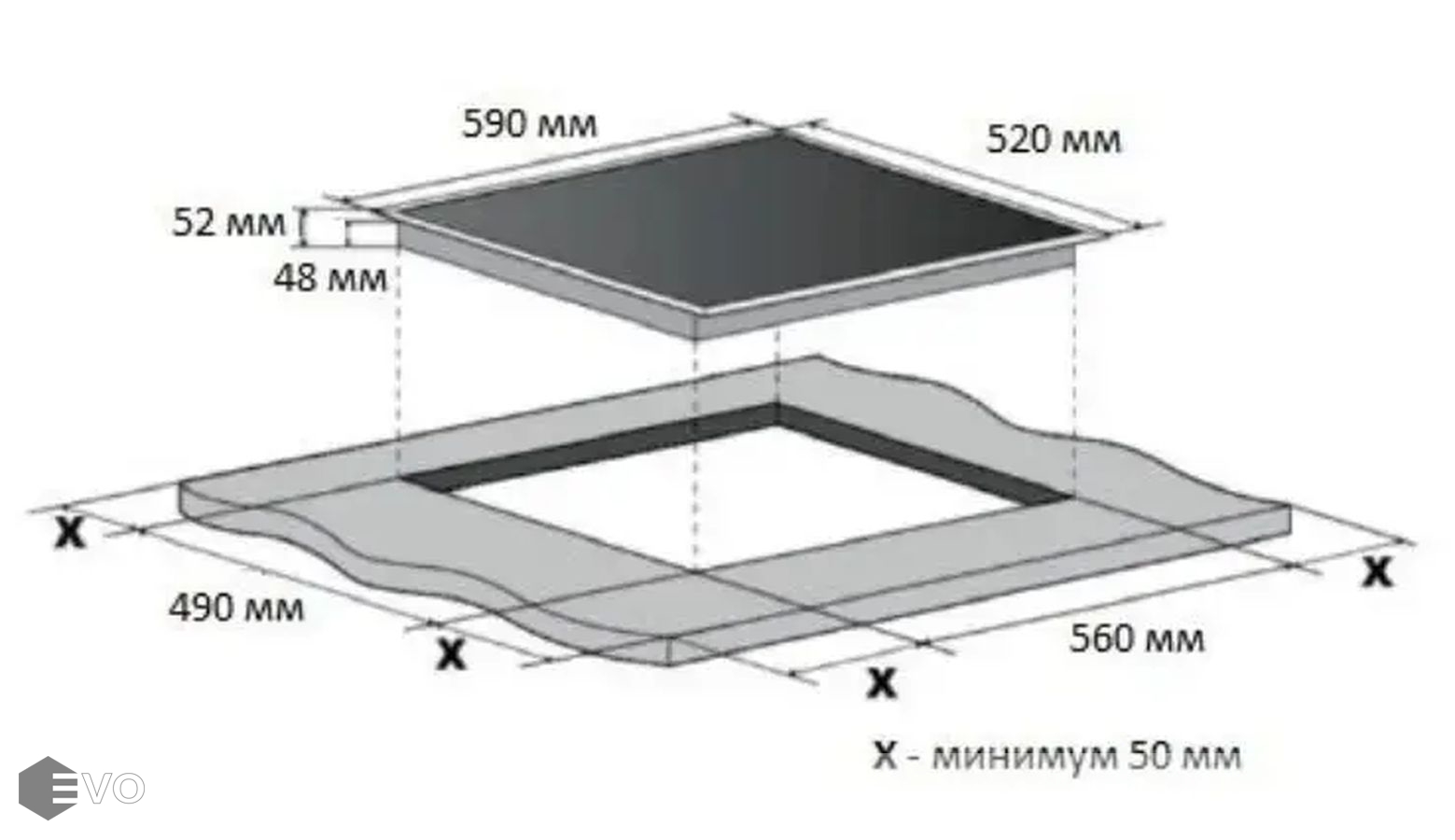 Размеры встраивания (ВхШхГ), мм: | 48х560х490 мм |