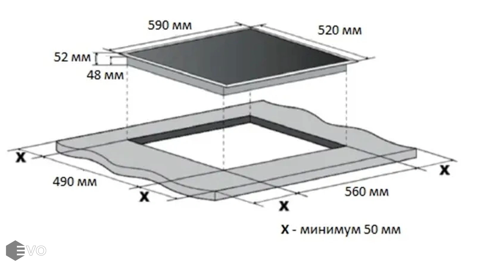 Размеры встраивания (ВхШхГ), мм: | 48х560х490 мм |
