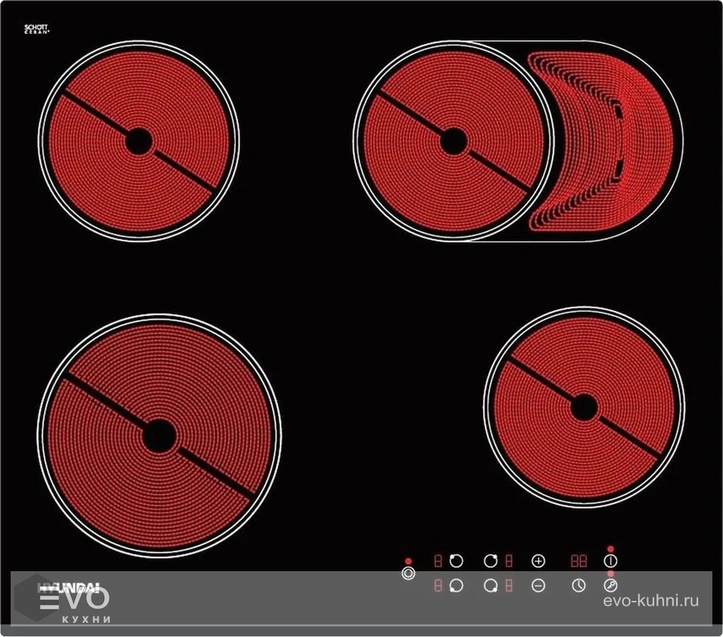 - Материал рабочей поверхности: стеклокерамика Schott Ceran(Германия)