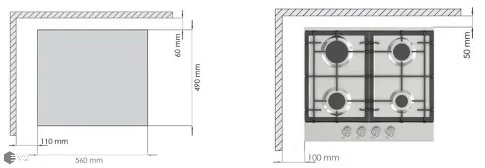 - Ширина встраивания 56 см