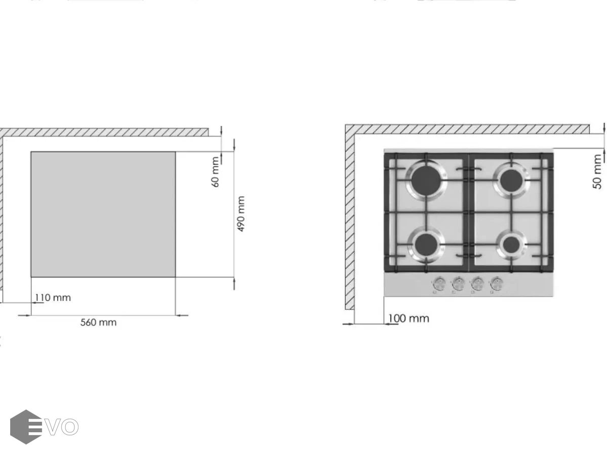 | Размеры встраивания (ВхШхГ), мм: | 60х560х490 мм |