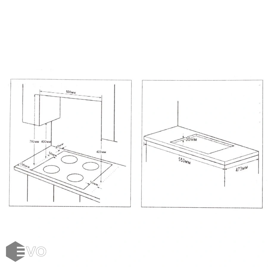 - Мощность каждой конфорки 0.9 кВт (передняя правая), 1.7 кВт (задняя левая), 1.7 кВт (задняя правая), 3.3 кВт (передняя левая)