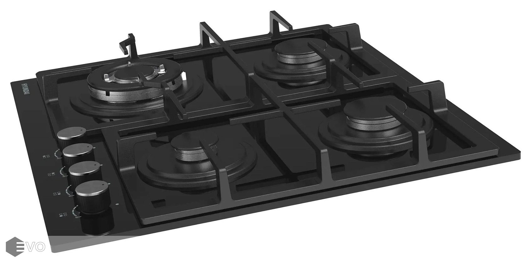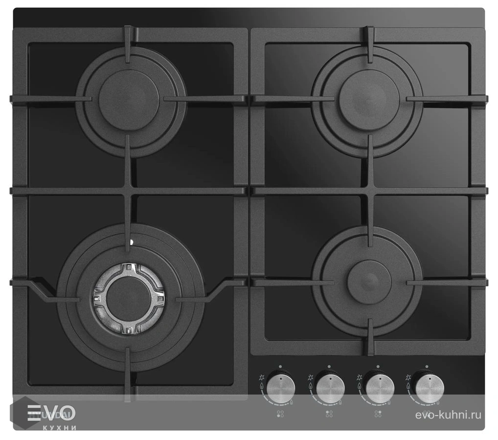 - Мощность каждой конфорки: 0.9 кВт (передняя правая), 1.7 кВт (задняя левая), 1.7 кВт (задняя правая), 3.5 кВт (передняя левая)